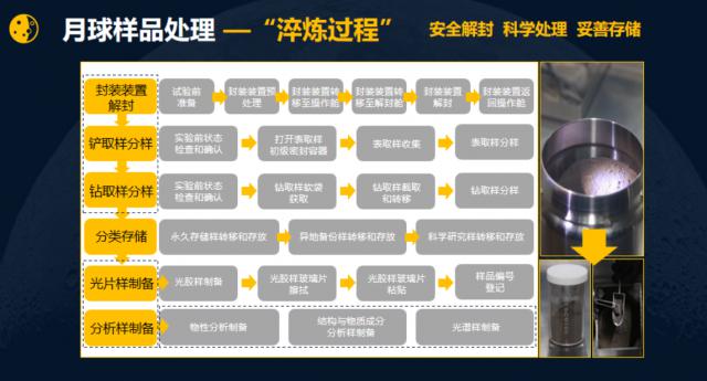 这些细致入微的工作积累了海量的月球样品基础研究数据。整个样品处理过程繁杂高亿管理,耗费大量时间与精力,但正是这些看似基础却至关重要的"淬炼"工序,是实现月球样品"点石成金"的关键步骤。