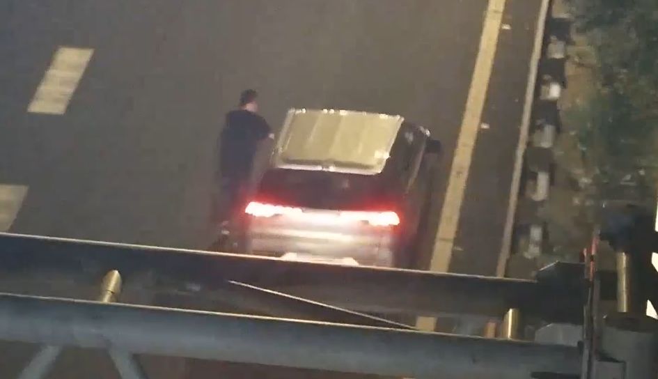 事发位于深夜,行驶视线受阻,而司机危险行为又发生在高速上,当时这一幕,高速交警勤务室都为司机捏一把汗,立即通知附近警力。