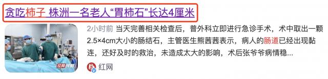 ▶ 有新闻报道,因贪吃柿子株洲一名老人,长了长达 4cm 的柿石。