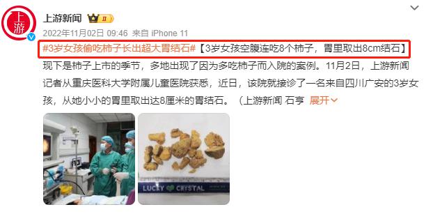 ▶ 此前有新闻报道汇操盘,3 岁女孩空腹连吃 8 个柿子,长出超大胃结石......
