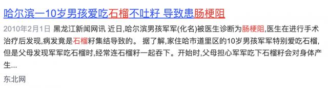 有新闻报道,10 岁男孩吃石榴不吐籽导致肠梗阻