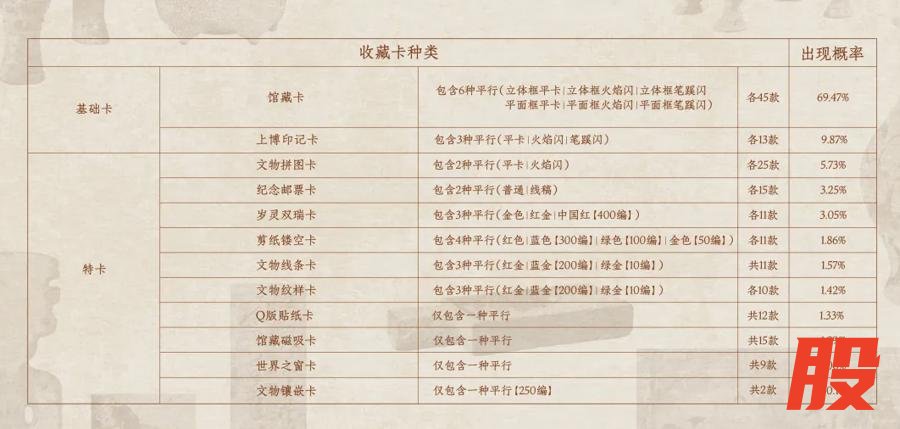 收藏卡种类出现概率